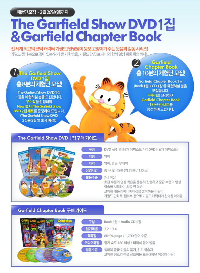 [üÇè´Ü ¸ðÁý] The Garfield Show DVD 1Áý / Garfield Chapter Book ~ 2. 26 (ÀÏ) |