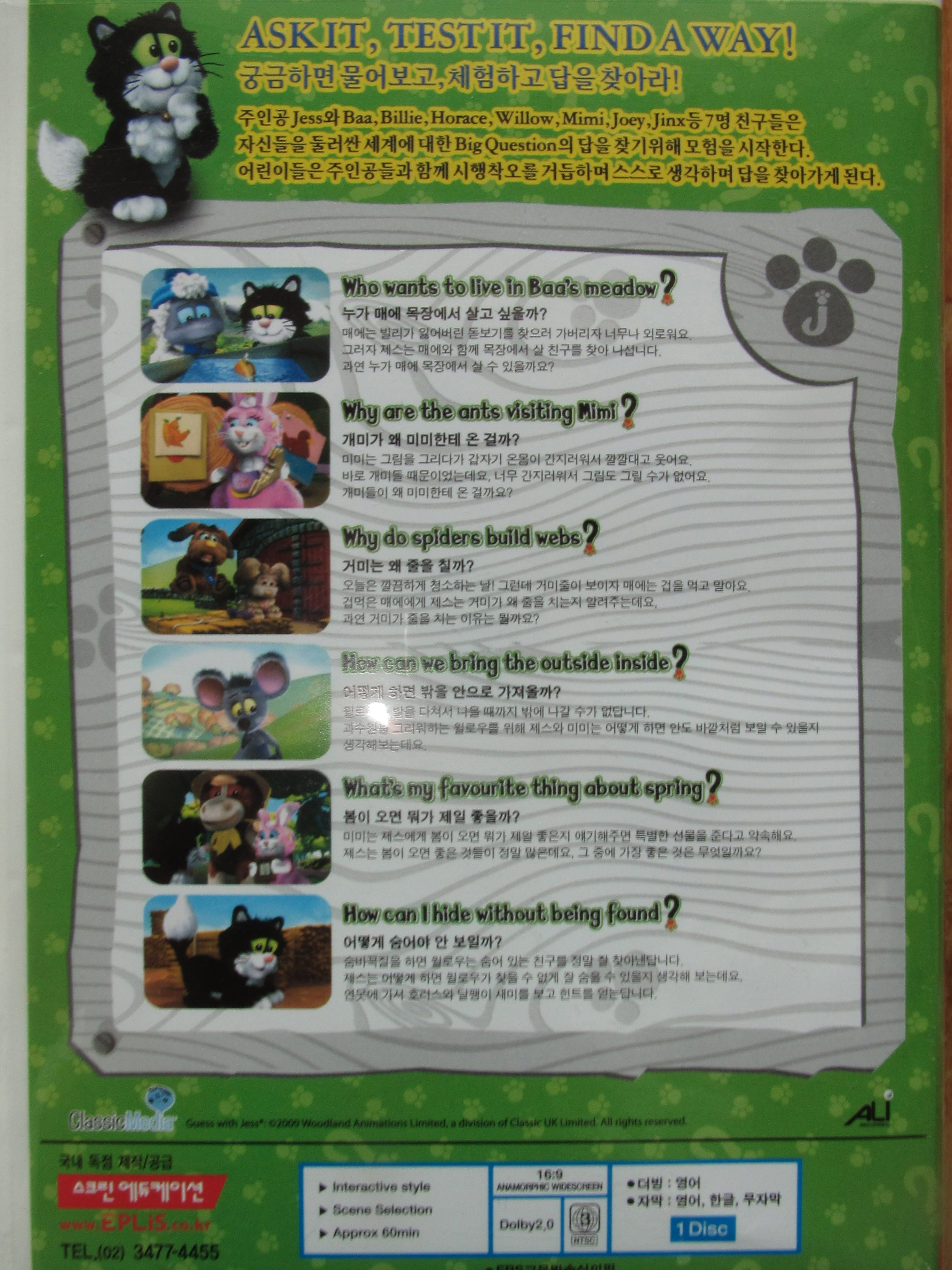 ¾ó¸¶Àü The cat in the hat dvd üÇèÀ» Çß¾ú´Âµ¥¿ä °úÇÐÂÊ ¾ê±â¿¡ º° °ü½É ¾ø´ø µþ¾ÆÀ̵µ ³Ê¹« Àç¹ÌÀÖ°Ô Àß ºÃ´Âµ¥, Guess with Jess°¡ ±× Àü´Ü°è³×¿ä. µÎ dvdÀÇ °øÅëÁ¡À̶ó¸é °úÇоê±â¸¦ Áñ°Å¿î ³ë·¡·Î Ç®¾ú´Ù´Â °Å¿¹¿ä. ¾ÆÀ̵éÀÌ ½Å³ª°Ô µû¶óÇÏ´Ù º¸¸é ¾î´À»õ °úÇÐÀÇ ¼¼°è¿¡¼­ Çì¾öÄ¡°í ÀÖ´Ù´Â »ç½Ç...  Àú~ µÞ´Ü°èµÇ´Â Magic school bus¸¦ ´õ Áñ°Üº¼ ³ªÀÌÀε¥ ¿ì¸®µþÀº À¯¾Æ¶§º¼¸¸ÇÑ dvdºÎÅÍ ½ÃÀÛÇϰí Àֳ׿ä. ¸ðµç ÀÏ¿£ ¼ø¼­°¡ ÀÖ´Â ¹ýÀÌ´Ï Áö±ÝÀÇ ½Ã°£ÀÌ °í¸¶¿ï ³¯ÀÌ Á¶¸¸°£ ¿À±æ ¹Ù¶ó¸ç ¿­½ÉÈ÷ º¸°í, µè°í ¿µ¾î³ªÀ̸¦ ¿Õâ ¸Ô¾î¾ß °Ú¾î¿ä. ¾Æ~! ¹èºÎ¸£´Ù ÇÒÁ¤µµ·Î... ¾Æ º¸Åë ´Ù¸¥ dvdµéÀº ¿¬°èµÇ¼­ Ã¥µµ ³ª¿À´øµ¥ Jess´Â ¾Æ¹«¸® ã¾ÆºÁµµ Ã¥À» º¼¼ö°¡ ¾ø³×¿ä. ¿©±â ¾ÖÇø®½º¿¡¼­ Á¦°øÇÏ´Â ¿öÅ©½ÃÆ® Á¤µµ¸¸ º¼ ¼ö ÀÖ¾î¿ä. Á¦°¡ ¸øÃ£´Â °ÇÁö...