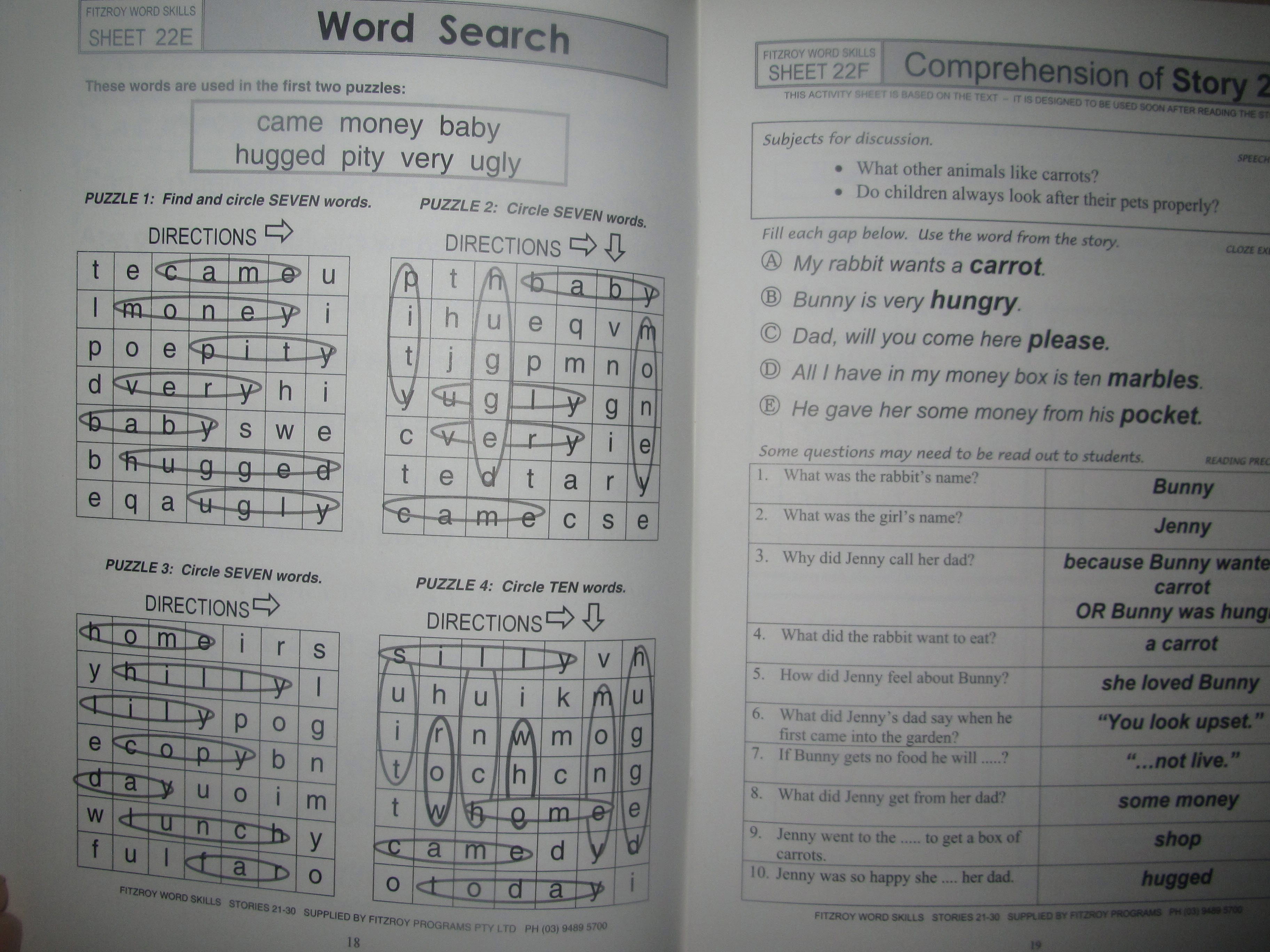 22±Ç¿¡ ÇØ´çÇÏ´Â WORD SKILLSÀ» »ìÆìº¸¸é [y as in happy] [ Special Words] [ Questions] [Question Marks] [Word Search] [ Comprehension of Story 22]·Î ´Ù¾çÇÑ