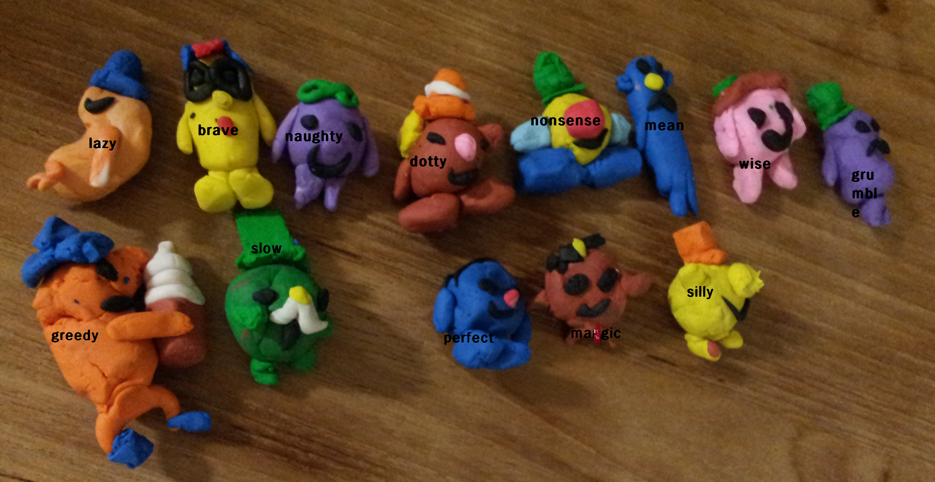 MR.Lazy, MR.Brave, Little Miss Naughty, Little Miss Dotty, MR.Nonsense