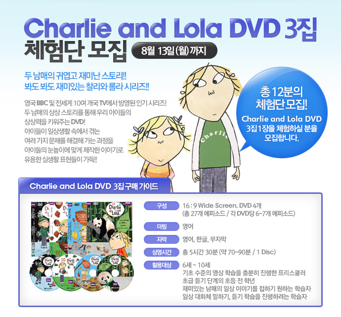 [üÇè´Ü ¸ðÁý] Charlie and Lola DVD 3Áý ~ 8. 13 (¿ù) À¯Áö¼ö