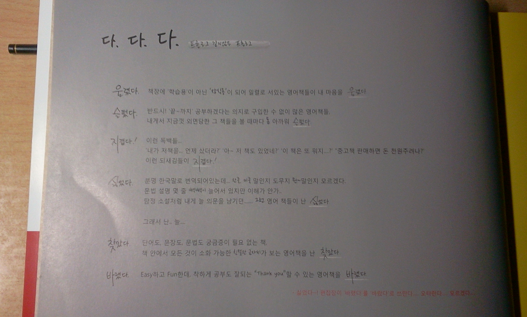 ¿µ¾î¶«¿¡ ¼Ó»óÇß´ø ³» ¸¶À½À» ÄÛÄÛ Âó¾î¼­ Àû¾îÁּż­ °¡·Á¿î °÷À» ±Ü¾îÁÖ´Â ´À³¦À̳׿ä!