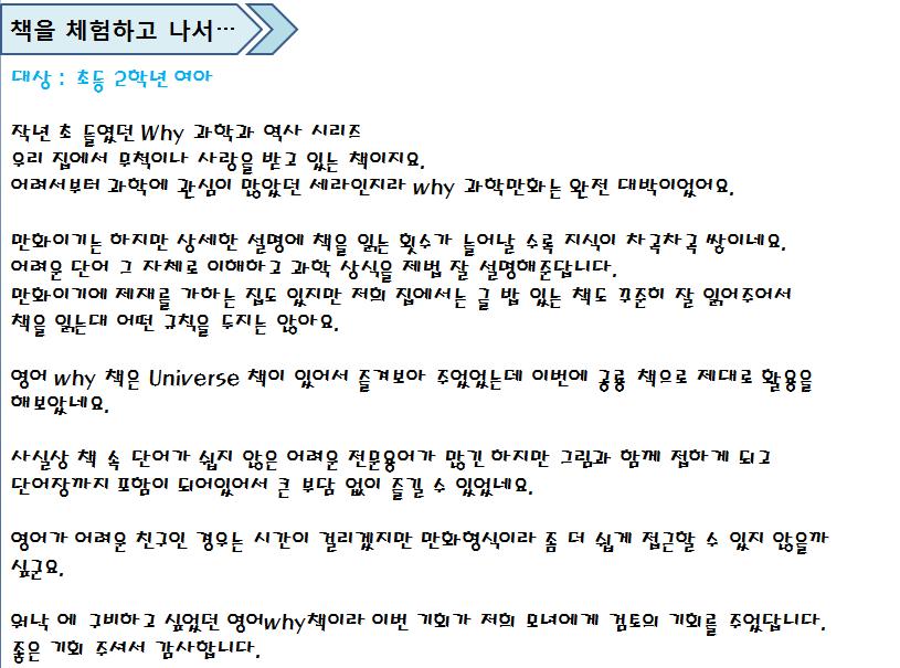 ÇöÀ̵鸾1´Ô~~³×..ÇѱÛÃ¥°ú ÇÔ²² Ȱ¿ëÇÏ´Ï ºÎ´ãµµ Àû°í ´õ¿í Àç¹ÌÀÖ°Ô ÀÐÀ» ¼ö ÀÖ¾ú´ä´Ï´Ù.^^* |
