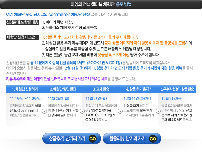 ¿Àºü¸¦ µÎ¾î¼­ ±×·±Áö ¸ðÇèÀ» ÁÁ¾ÆÇØ¿ä. ¾Æ¾ÓÀÇ Àü¼³Àº ±×ÀüºÎÅÍ À̸§¸¸ µé¾î¼­ ³»¿ëÀÌ ±Ã±ÝÇߴµ¥ À̹ø ±âȸ¿¡ »ìÆìº¸°í  ½Í½À´Ï´Ù. Áý¿¡¼­ ¿µ¾î¸¦ Çϱ⠶§¹®¿¡ Ç×»ó »õ·Î¿î °ÍÀ» ã°í ±³À縦 ¼±Á¤ÇØ¾ß Çϴµ¥, ¾ÖÇø®½º¿¡¼­ ´Ù¾çÇÑ Ã¥µéÀ» ¼Ò°³ÇØ ÁÖ½Ã´Ï ¸¹Àº µµ¿òÀÌ µË´Ï´Ù. ±× Áß¿¡¼­ ÀúÈñ ¾ÆÀÌ¿¡°Ô ¸Â´Â °ÍÀ» °í¸¦ ¼ö ÀÖ°í ´Ù¸¥ ºÐµéÀÇ ÇнÀ¹æ¹ýÀ» º¼ ¼ö À־ Àú¿Í ¾ÆÀÌ¿¡°Ô´Â ¼ÒÁßÇÑ ±âȸÀÔ´Ï´Ù.