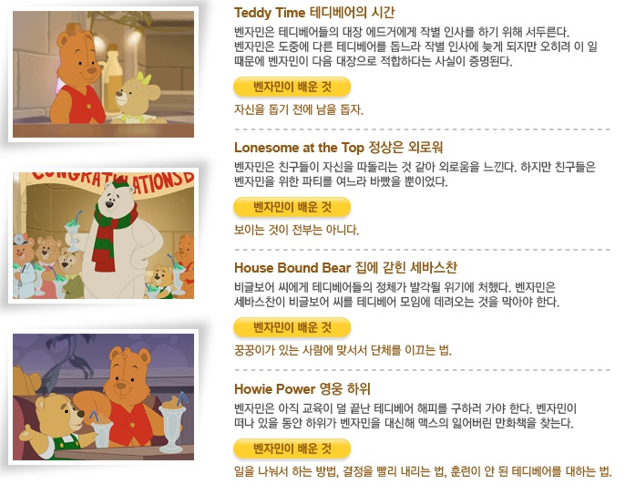 ÀúÈñ°¡ üÇèÇÑ 1¹ø <Teddy Time>¿¡´Â ¸ðµÎ 4°³ÀÇ ¿¡ÇǼҵå·Î ±¸¼ºµÇ¾ú¾î¿ä. ªÀº ¿¡ÇǼҵåÁö¸¸ ±× ¼Ó¿¡´Â º¥ÀÚ¹ÎÀÌ ¹è¿î ±³ÈÆÀÌ ÀÖ¾î¿ä. ¾ÆÀ̵鿡°Ô ¸»·Î ÁöÁ¢ÇÏÁö ¾Ê¾Æµµ º¸´Ùº¸¸é ÀúÀý·Î ±ú´Ý°Ô µË´Ï´Ù.
