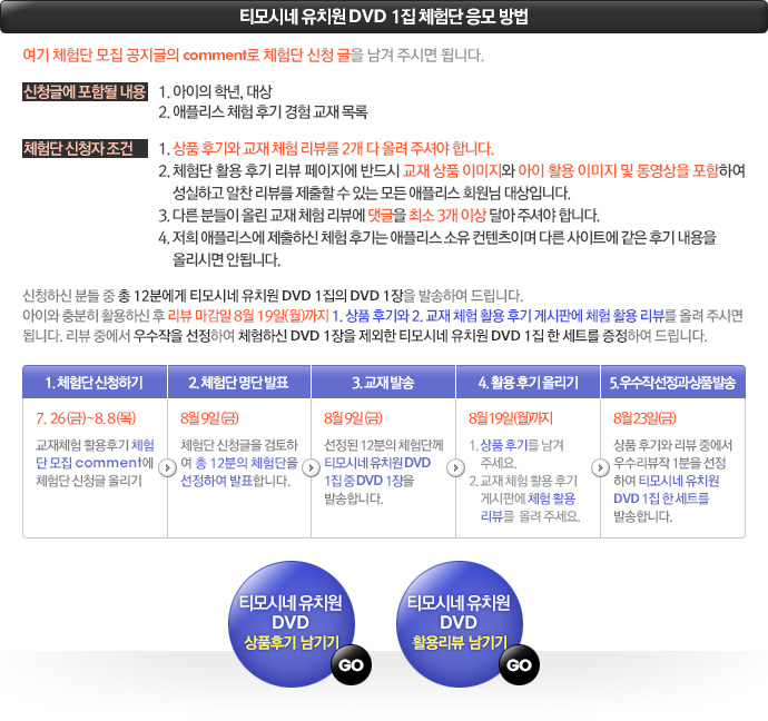 [üÇè´Ü ¸ðÁý] Ƽ¸ð½Ã³× À¯Ä¡¿ø DVD 1Áý ~ 8¿ù 8ÀÏ(¸ñ) |