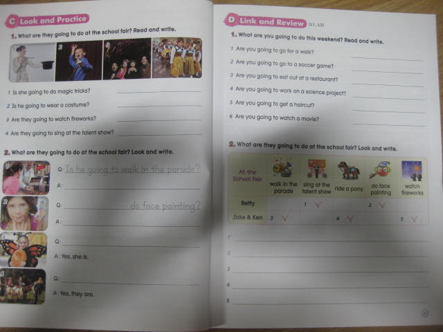 lesson 2¿¡¼± what's she going to do at the school fair?¹®ÀåÀ» ¹Ýº¹ÇÏ¸ç ´äÀ» ÇØ º¸¾Ò¾î¿ä
