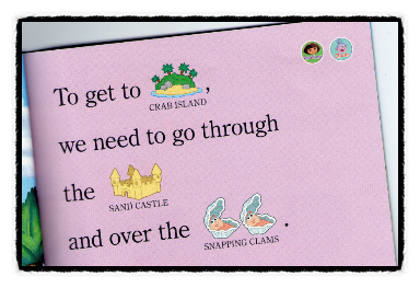 Dora and the Baby CrabÀÇ °æ¿ì rebus words°¡ 15°³ Á¤µµ Æ÷ÇÔ µÇ¾î Àֳ׿ä.