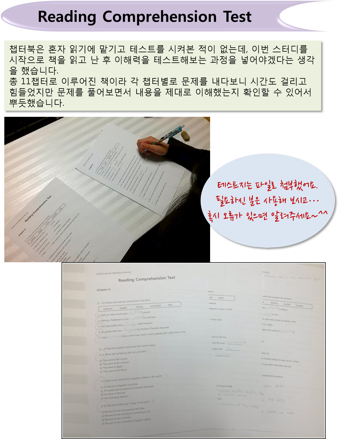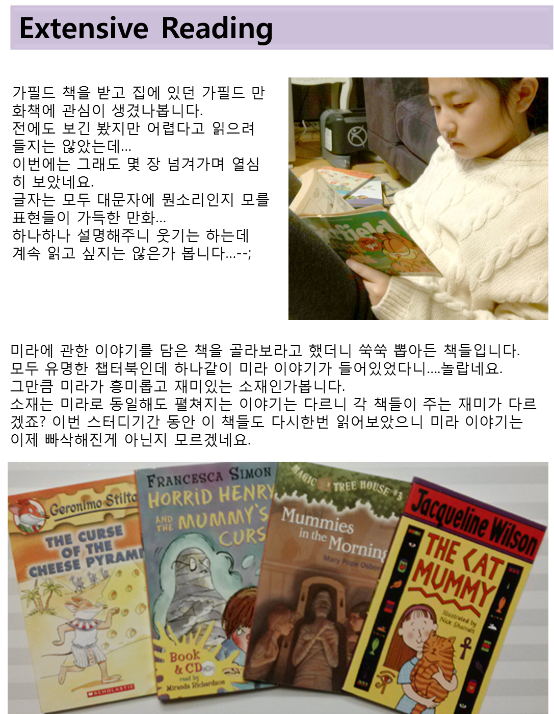 ¿µ¾î ½Ç·Âµµ ºÎ½ ´ÃÀº °É º¸¸é, üÇè´ÜÀ» ¾ÈÇϽô µ¿¾È¿¡µµ Áö´Ï¿Í ²ÙÁØÈ÷ Ã¥Àб⸦ Çϼ̱¸³ª~´À³¥ ¼ö ÀÖ¾ú³×¿ä.