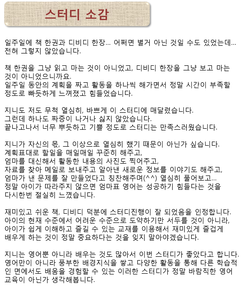µû´ÔÀÌ ¾²±âµµ ÀßÇÏ´Â °Í °°¾Æ ºÎ·´³×¿ä. Ã¥°ú µðºñµð¸¦ ÀÌ·¸°Ô ÁýÁßÇØ¼­ ÇÏ¸é ´õ ±íÀÌ Àß ÇÒ ¼ö ÀÖ°Ú´Ù´Â »ý°¢ÀÌ µé¾î¿ä. ±×¸®°í ¾î·Á¿î ¼öÁØÀ¸·Î µµ¾à¸¸ ¼­µÎ¸¦ °ÍÀÌ ¾Æ´Ï¶ó Áñ±æ ¼ö ÀÖ´Â ¿µ¾î°¡ µÇ¾î¾ß°Ú´Ù´Â ¸»¿¡ µ¿°¨ÇÕ´Ï´Ù.