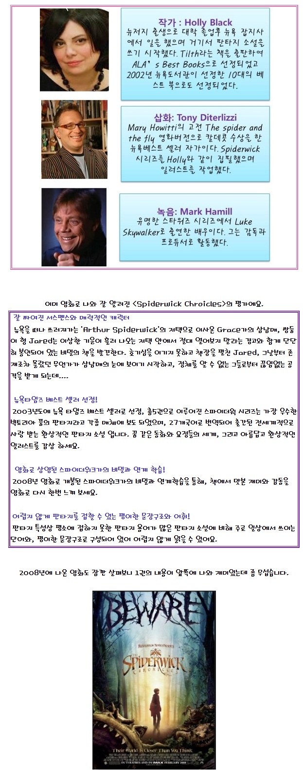 <P><IMG src="/shop/lib/meditor/../../data/editor/eb43a2e36ef1cfb9.jpg"> </P> <P align=center><IMG src="/shop/lib/meditor/../../data/editor/c57acd0025f59647.jpg"></P> <P align=center><IMG src="/shop/lib/meditor/../../data/editor/906ef2ec68309831.jpg"></P> <P align=center><A href="http://www.youtube.com/watch?v=3lEyBXBObqY"><STRONG><FONT color=#ff0000>¹Ù·Î°¡±â</FONT></STRONG></A></P> <P align=center> </P> <P align=center> </P> <P align=center><IMG src="/shop/lib/meditor/../../data/editor/59e6af5aa1f5d8b7.jpg"></P> <P align=center><IMG src="/shop/lib/meditor/../../data/editor/b76102af27004199.jpg"></P> <P align=center> </P> <P align=center> </P> <P align=center><IFRAME height=321 src="http://serviceapi.nmv.naver.com/flash/convertIframeTag.nhn?vid=888949C71CB9192AD25A9D6A553FBF3DD2BF&outKey=V1247c10ccea044c6aba02ccdf564559e3bf6fdf0cc9b3fd848392ccdf564559e3bf6" frameBorder=no width=512 scrolling=no></IFRAME></P> <P align=center> </P> <P align=center><IMG src="/shop/lib/meditor/../../data/editor/ce24f5eaa619e16d.jpg"></P> <P align=center> </P> <P align=center><IFRAME height=321 src="http://serviceapi.nmv.naver.com/flash/convertIframeTag.nhn?vid=501D95058B9C19159C86216FDDAA4E7CE478&outKey=V1286ca2d19094d7a43660fc3b833223888e9731c5c2d5c4af0490fc3b833223888e9" frameBorder=no width=512 scrolling=no></IFRAME></P> <P align=center> </P> <P align=center><IMG src="/shop/lib/meditor/../../data/editor/3d9e3d9a9006752d.jpg"></P> <P align=center> </P> <P align=center><A href="http://pages.simonandschuster.com/spiderwick/"><FONT color=#ff0000><STRONG>http://pages.simonandschuster.com/spiderwick/</STRONG></FONT></A></P> <P align=center><IMG src="/shop/lib/meditor/../../data/editor/5b7189225334174a.jpg"></P> <P align=center> </P>