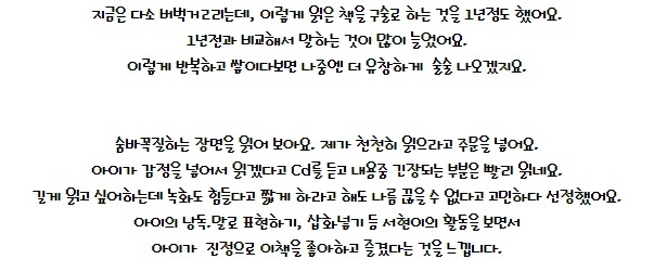 PS. ¿Àµð¿À ¼Ò¸® µé¾îº¸½Ã¶ó°í ÀÛ°¡°¡ Á÷Á¢ Àоî ÁÖ´Â µ¿¿µ»ó ¿Ã·Áµå·Á¿ä.