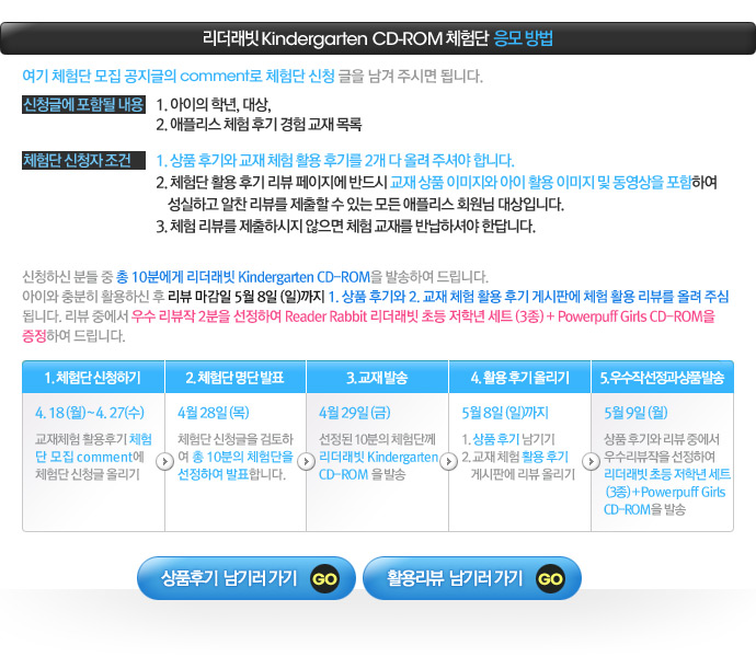 [üÇè´Ü ¸ðÁý] ¸®´õ·¡ºø Kindergarten CD-ROM [~ 4. 27(¼ö)] |