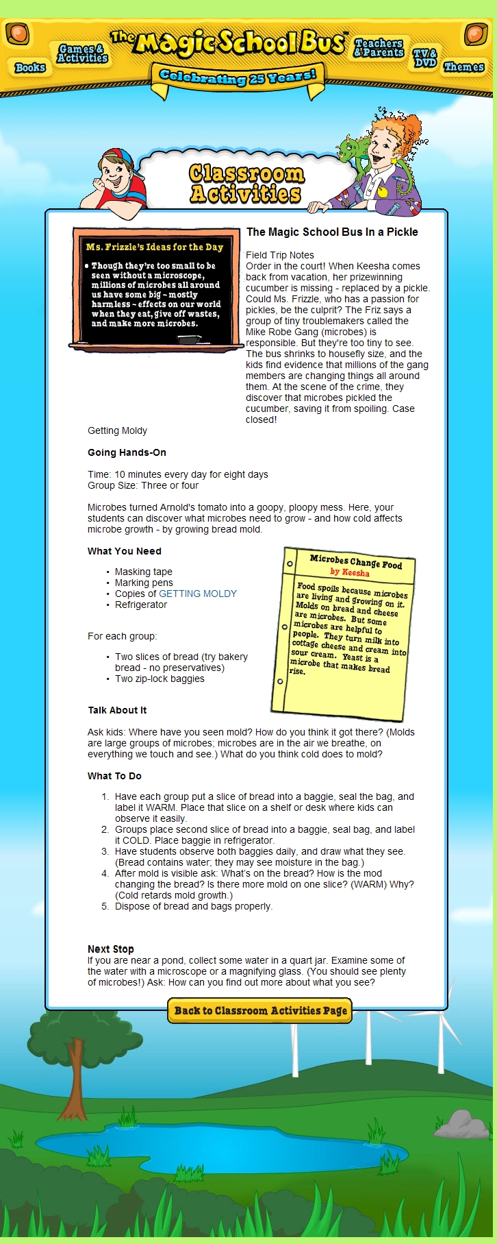 http://www.scholastic.com/magicschoolbus  ¿¡ °¡½Ã¸é ´Ù¾çÇÑ ÀڷḦ ¾òÀ» ¼ö ÀÖ´ä´Ï´Ù.^^