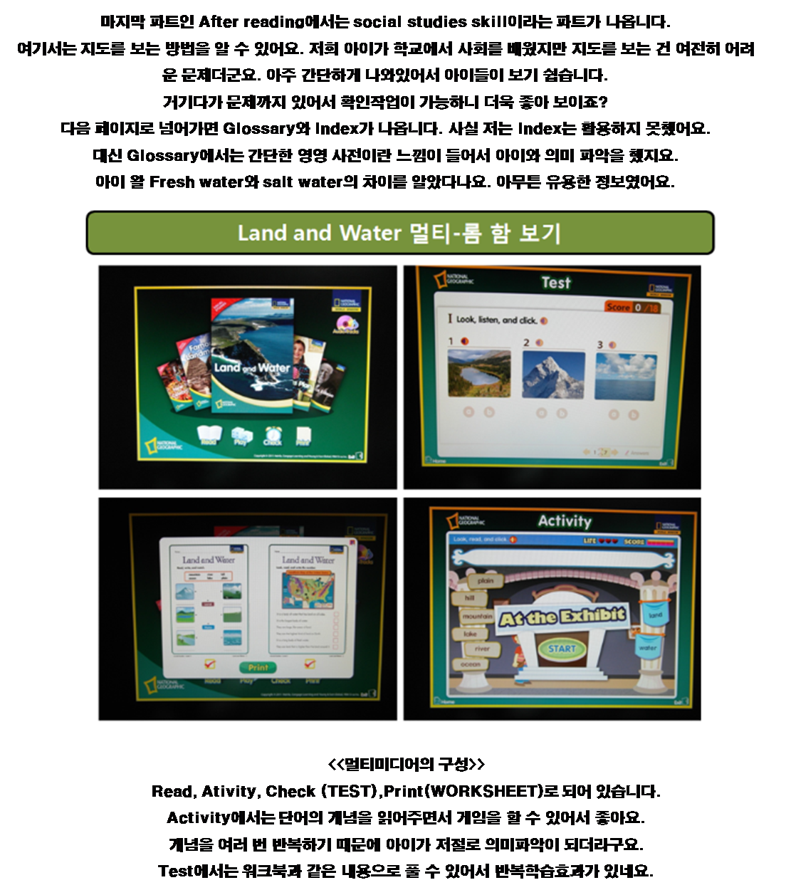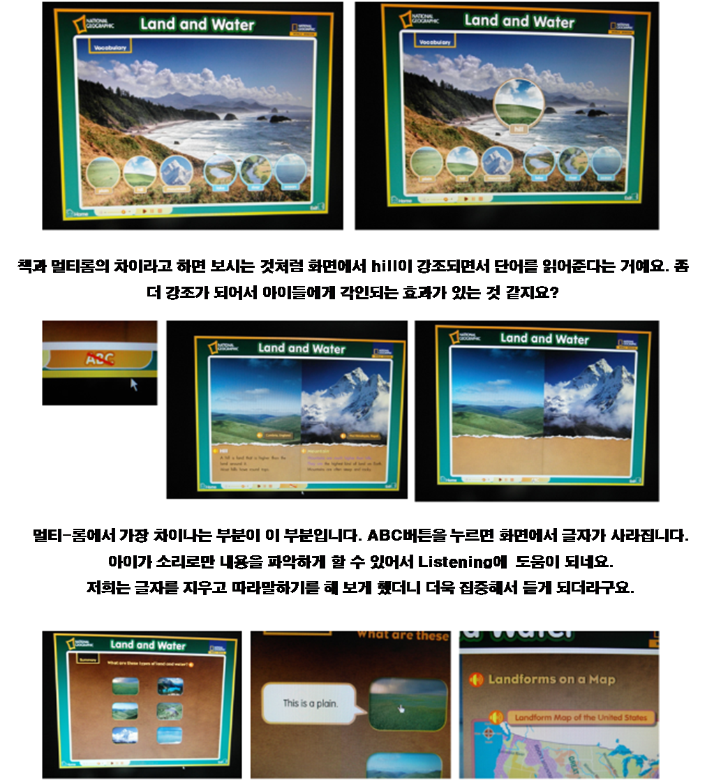 ¸ÖƼ-·ÒÀÇ ÀåÁ¡Àº È­¸é°ú ¼Ò¸®¸¦ µ¿½Ã¿¡ µè´Â´Ù´Â °ÅÁö¿ä. ¿©±â¼­µµ µèÁö ¸øÇÑ ¼Ò¸®¸¦ ½ºÇÇÄ¿¸ð¾çÀÇ ¹öư¸¸ ´©¸£¸é ´Ù½Ã µéÀ» ¼ö ÀÖ¾î¿ä. °Å±â´Ù°¡ À§ÀÇ È­¸éó·³ Ã¥¿¡¼­´Â ±ÛÀÚ°¡ ¶ßÁö ¾ÊÁö¸¸ ±×¸²À» Ŭ¸¯ÇÏ¸é ±ÛÀÚ°¡ ¶ß¸é¼­ ³»¿ëÀ» ÀоîÁÖÁö¿ä. ¾ÆÀ̰¡ ¿Ü¿ì·Á ÇÏÁö ¾Ê¾Æµµ ÀúÀý·Î ¾ÆÀÌ¿¡°Ô ÀνĵǴ ÁÁÀº ÇнÀ¹æ¹ýÀ̳׿ä.