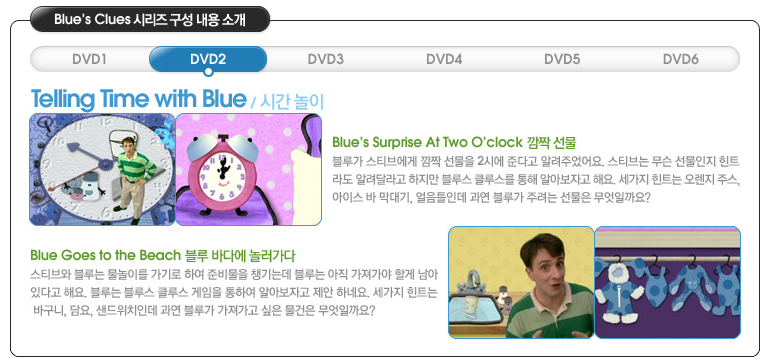 telling time with blue´Â µÎ°³ÀÇ ³»¿ë(blue's surprise at two o'clock , blue goes to the beach)À¸·Î
