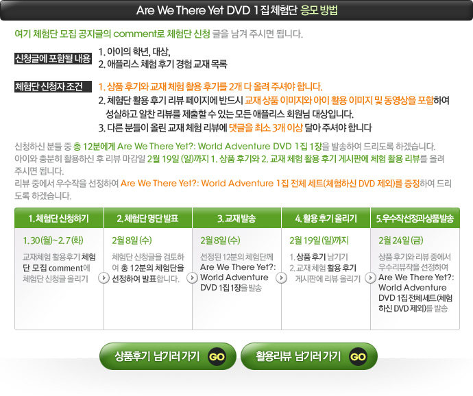 Are We There Yet? üÇè´ÜÀº ´Ù¸¥ ºÐµéÀÌ ¿Ã¸° Are We There Yet? ±³ÀçüÇè ¸®ºä¿¡ ´ñ±ÛÀ» ÃÖ¼Ò 3°³ ÀÌ»ó ´Þ¾Æ ÁÖ¼Å¾ß ÇÑ´ä´Ï´Ù.