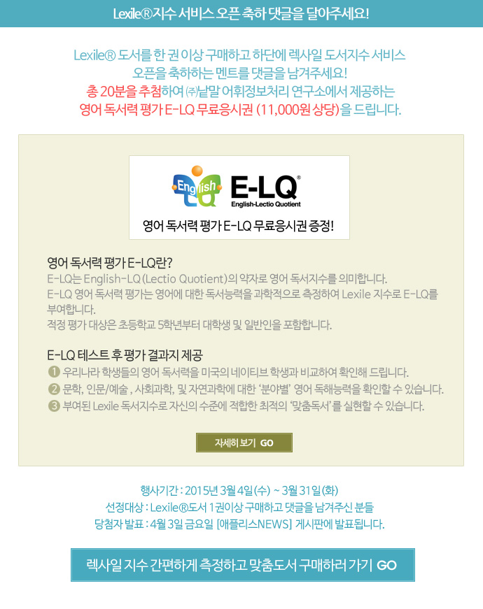 LEXILE? µµ¼­Áö¼ö ¼­ºñ½º OPEN! À¯Áö¼ö