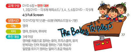 The baby Triplets ¿ì¸®´Â ¼¼½ÖµÕÀÌÀÇ ½Ã¸®Áî ÀÚü°¡ ¾ÆÀ̵éÀÇ ¾ð¾î½Àµæ¿¡ ÁßÁ¡À» µÎ°í ¸¸µé¾îÁø ¸¸Å ´Ü¾îµéÀÇ ¹Ýº¹¼ºÀÌ ¸Å ¿¡ÇǼҵåÀÇ ³ë·¡µéÀ» ÅëÇØ¼ Àß Ç¥ÇöµÇ¾î ÀÖÀ¸¸ç ¾ÆÀ̵鿡°Ô ´Ü¾îµé¿¡ ´ëÇÑ ÀÌÇØ¿Í Ç¥Çö¹ý¿¡ ´ëÇÑ ¿©·¯ °¡Áö ¹æ¹ýµéÀ» ´Ù¾çÇÏ°Ô ¼Ò°³Çϰí ÀÖ½À´Ï´Ù.
