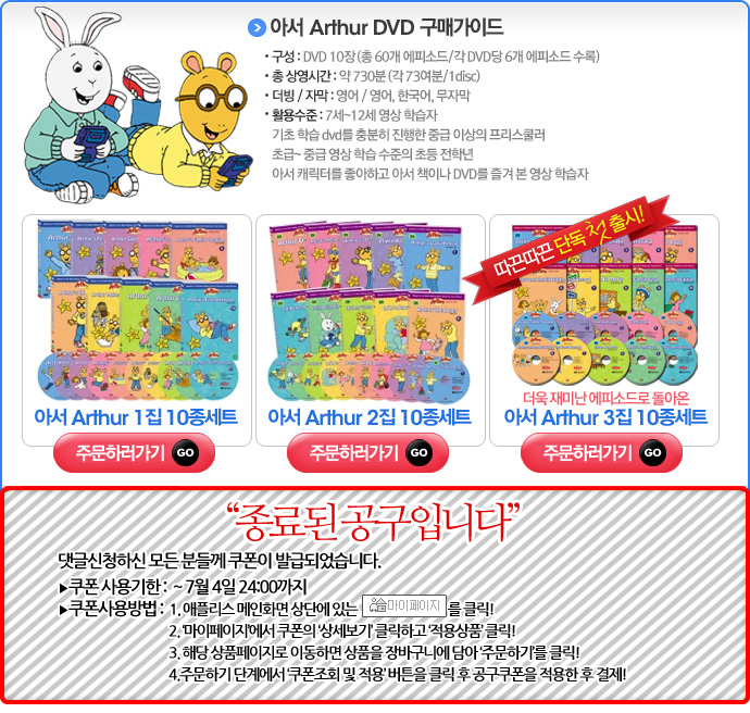 [´ñ±Û°ø±¸] Á¾·á[´ñ±Û°ø±¸ 136Â÷] Arthur DVD 1Áý, 2Áý, 3Áý À¯Áö¼ö