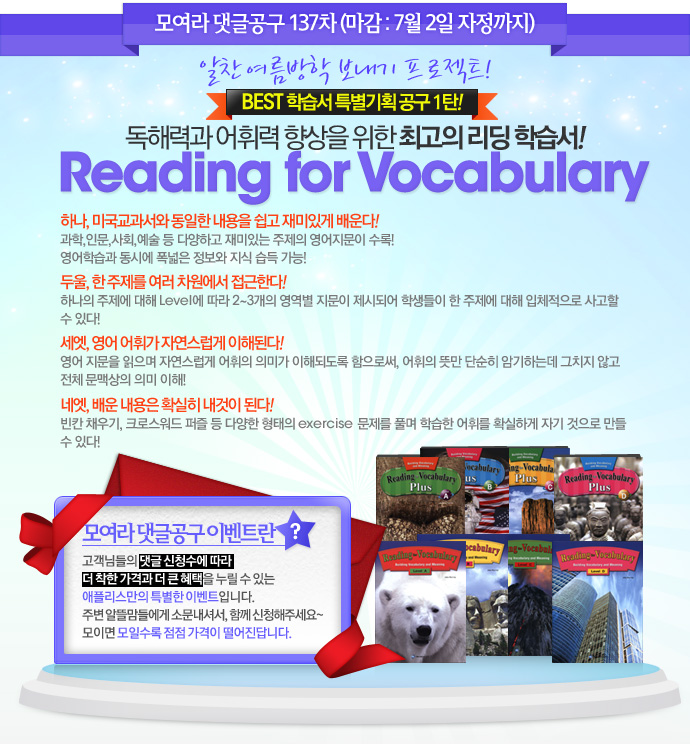 ¿äÁò ¿µ¾îÃ¥Àб⿡ Àç¹Ì¸¦ ´À³¢°í ÀÖ´Â µ¥ Á¤¸» ÀÌÇØÇϰí Àаí ÀÖ³ª..°ÆÁ¤À» ¸¹ÀÌ Çϰí ÀÖ¾ú°Åµç¿ä..±×·±µ¥ À̹ø ¹æÇж§ ´Ü¾îµéÀ» ¸¹ÀÌ ÀÍÈú¼ö ÀÖ´Â ÁÁÀº ±³ÀçÀΰ۰¾Æ¿ä..±âºÐÁÁ°Ô ½ÅûÇÕ´Ï´Ù..^^* |