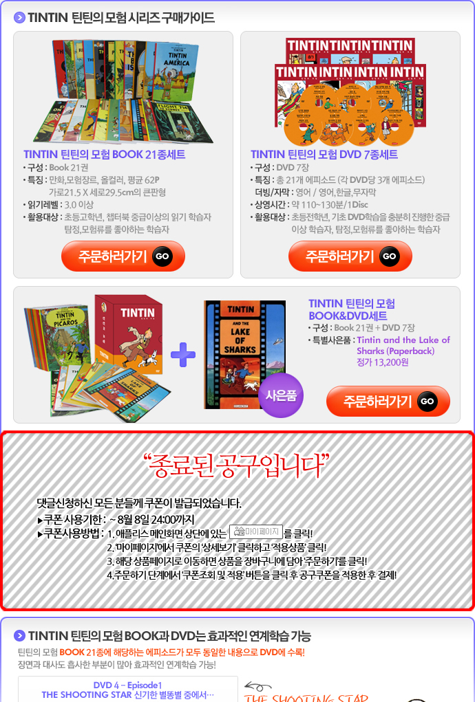 [´ñ±Û°ø±¸] Á¾·á[´ñ±Û°ø±¸ 154Â÷] Tin Tin DVD & BOOK |