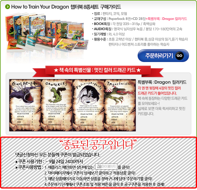 [´ñ±Û°ø±¸] Á¾·á[´ñ±Û°ø±¸ 179Â÷] How to Train Your Dragon éÅÍºÏ 8Á¾¼¼Æ® (¸¶°¨:~9¿ù17ÀÏ) |