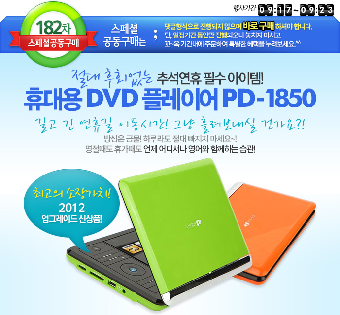 [½ºÆä¼È°ø±¸] Á¾·á[½ºÆä¼È°ø±¸ 182Â÷] ÈÞ´ë¿ë Æ÷Åͺí DVD Ç÷¹À̾î PD-1850 (¸¶°¨:~9¿ù23ÀÏ) |