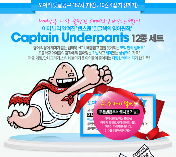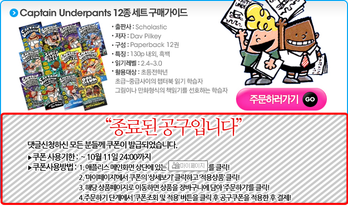[´ñ±Û°ø±¸] Á¾·á[´ñ±Û°ø±¸ 187Â÷] Captain Underpants 12Á¾¼¼Æ® (¸¶°¨:~10¿ù 4ÀÏ) |