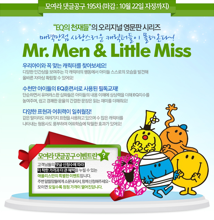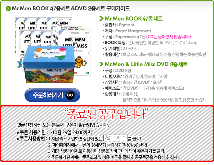 [´ñ±Û°ø±¸] Á¾·á[´ñ±Û°ø±¸ 195Â÷]Mr.Men BOOK + Mr.Men & Little Miss DVD ¼¼Æ® (¸¶°¨:~10¿ù22ÀÏ) |