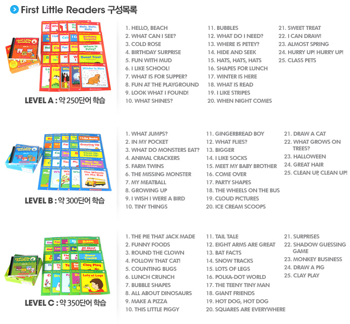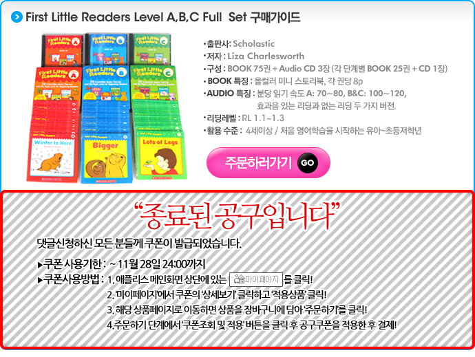 [´ñ±Û°ø±¸] Á¾·á[´ñ±Û°ø±¸ 209Â÷]First Little Readers A,B,C´Ü°è 75±Ç¼¼Æ® (¸¶°¨:~11¿ù 21ÀÏ) |
