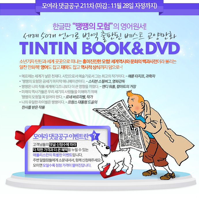 [´ñ±Û°ø±¸] Á¾·á[´ñ±Û°ø±¸ 211Â÷] ƾƾÀÇ ¸ðÇè TIN TIN BOOK & DVD (¸¶°¨:~11¿ù 28ÀÏ) |