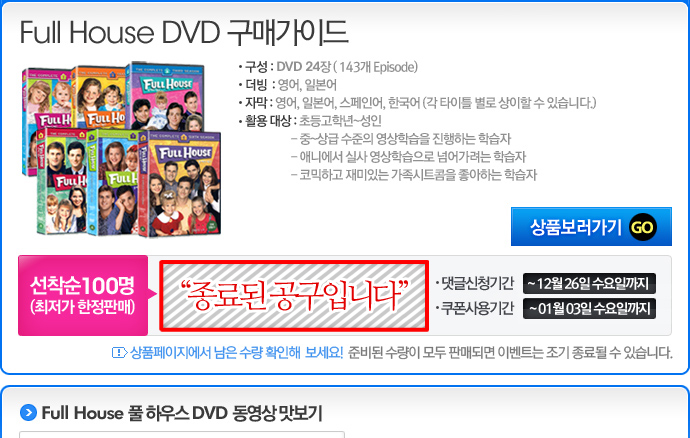[¼±Âø¼ø ´ñ±Û°ø±¸ 222Â÷]Full House DVD 1~6Áý (±â°£: ~12/26±îÁö)