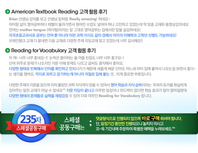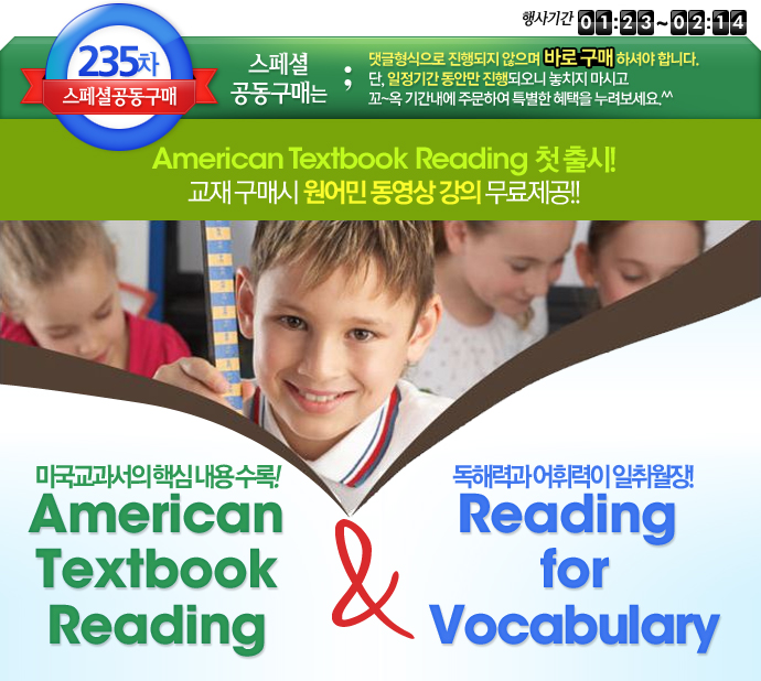 [½ºÆä¼È°ø±¸] Á¾·á[½ºÆä¼È°ø±¸ 235Â÷] American Textbook Reading & Reading for vocabulary ÇнÀ¼­ (±â°£: ~2/14±îÁö) À¯Áö¼ö
