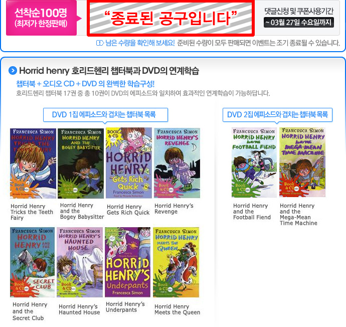 [´ñ±Û°ø±¸] Á¾·á[¼±Âø¼ø ´ñ±Û°ø±¸ 257Â÷] Horrid henry éÅÍºÏ 17Á¾¼¼Æ® (±â°£:~3/27±îÁö) |