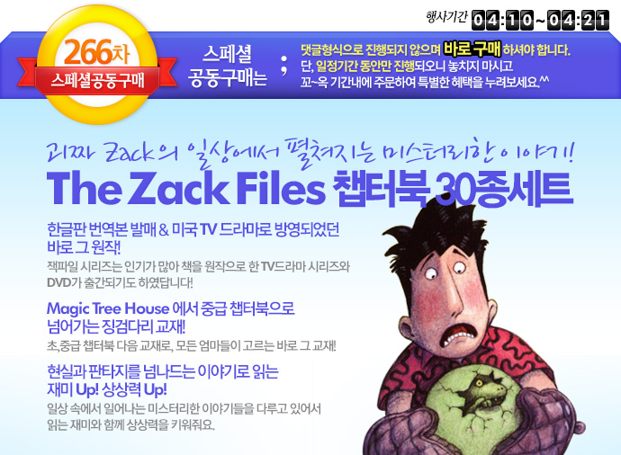 <table width="690" border="0" cellspacing="0" cellpadding="0"> <tr> <td><img src="/KIZ/etc/img2/spkongu130408_zack01.jpg"></td> </tr> <tr> <td><img src="/KIZ/etc/img2/spkongu130408_zack02.jpg" border="0" usemap="#Sp01"></td> </tr> <tr> <td><img src="/KIZ/etc/img2/spkongu130408_zack03.jpg" usemap="#Sp02" border="0"></td> </tr> <tr> <td><img src="/KIZ/etc/img2/spkongu130408_zack04.jpg"></td> </tr> <tr> <td height="68" align="left" style="background:url(/KIZ/etc/img2/spkongu130408_zack05.jpg) no-repeat top left;vertical-align:top;padding-left:242px;"> <table width="280" border="0" cellspacing="1" cellpadding="0" bgcolor="#D6D6D6"> <tr> <td><script type="text/javascript">media02('http://www.lwbooks.co.kr/bookinfo/sound/zfiles01.wma',280,26);</script></td> </tr> </table></td> </tr> <tr> <td><img src="/KIZ/etc/img2/spkongu130408_zack06.jpg"></td> </tr> <tr> <td><img src="/KIZ/etc/img2/spkongu130408_zack07.jpg" usemap="#Sp03" border="0"></td> </tr> </table> <map name="Sp01"> <area shape="rect" coords="9,106,679,322" href="/shop/goods/goods_view.php?&goodsno=1685&category=009005002016" onFocus="this.blur();"> </map> <map name="Sp02"> <area shape="rect" coords="356,666,477,702" href="/shop/goods/goods_view.php?&goodsno=33081&category=009019001" target="_blank" onFocus="this.blur();"> </map> <map name="Sp03"> <area shape="rect" coords="246,169,367,208" href="/shop/board/view.php?id=contents&search[subject]=on&search[word]=%C0%E8%C6%C4%C0%CF&no=1432" target="_blank" onFocus="this.blur();"> <area shape="rect" coords="310,359,424,394" href="/shop/board/view.php?id=contents&search[subject]=on&search[word]=ZACK+FILE&no=1433" target="_blank" onFocus="this.blur();"> </map>