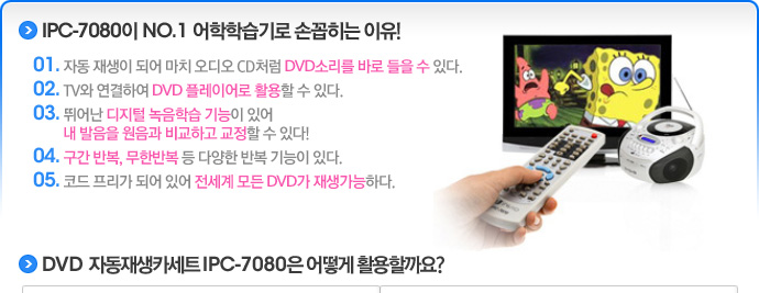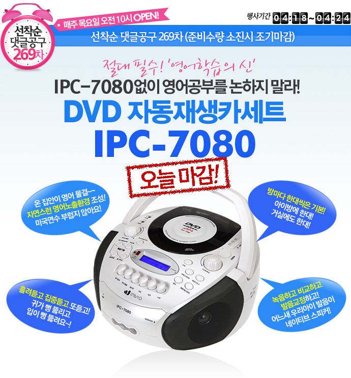 [´ñ±Û°ø±¸] Á¾·á[¼±Âø¼ø ´ñ±Û°ø±¸ 269Â÷] DVD ÀÚµ¿Àç»ýÄ«¼¼Æ® IPC-7080 & ´Ü°èº° ÇнÀ¿ë BEST DVD (±â°£: ~4/24±îÁö) À¯Áö¼ö