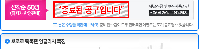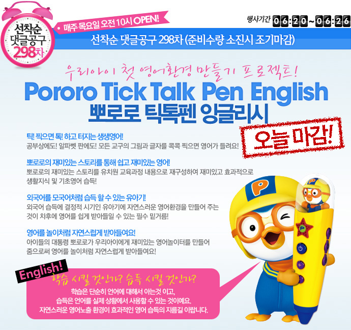 [´ñ±Û°ø±¸] Á¾·á [¼±Âø¼ø ´ñ±Û°ø±¸ 298Â÷] »Ç·Î·Î ƽÅ寿 À×±Û¸®½Ã (±â°£: ~6/26 ±îÁö) |