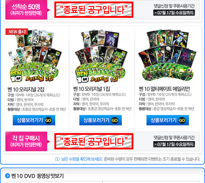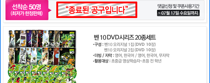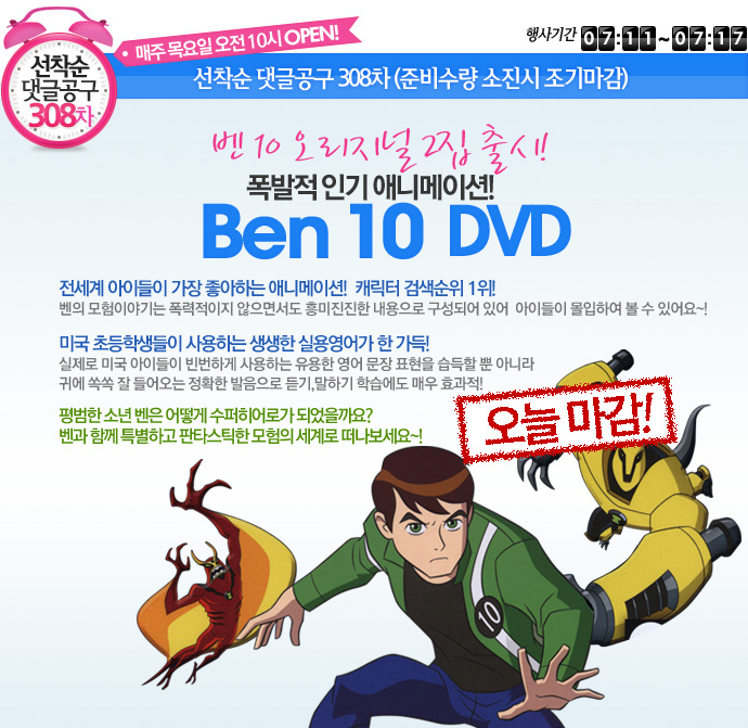 [´ñ±Û°ø±¸] Á¾·á [¼±Âø¼ø ´ñ±Û°ø±¸ 308Â÷] Ben 10 DVD ½Ã¸®Áî (±â°£: ~7/17) |