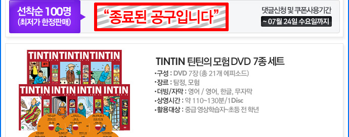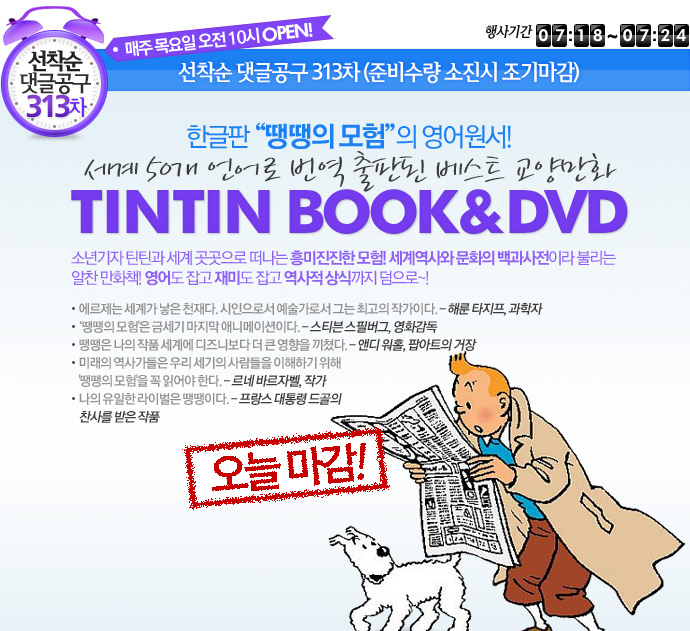 [´ñ±Û°ø±¸] Á¾·á [¼±Âø¼ø ´ñ±Û°ø±¸ 313Â÷] TINTIN BOOK & DVD (±â°£: ~7/24) |