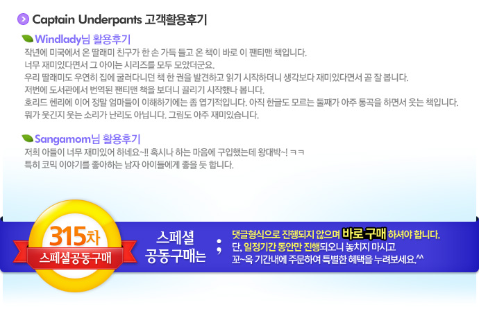 [½ºÆä¼È°ø±¸] Á¾·á[½ºÆä¼È °ø±¸ 315Â÷] Captain Underpants (±â°£: ~8/4) À¯Áö¼ö