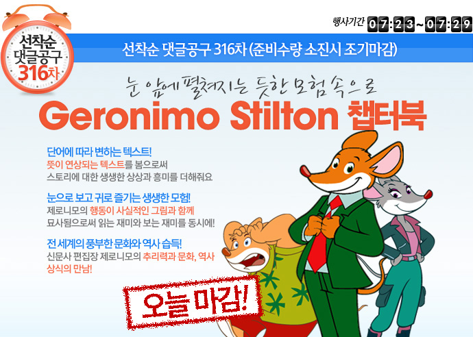 [´ñ±Û°ø±¸] Á¾·á [¼±Âø¼ø ´ñ±Û°ø±¸ 316Â÷] Geronimo Stilton éÅÍºÏ (±â°£: ~ 7/29±îÁö) |