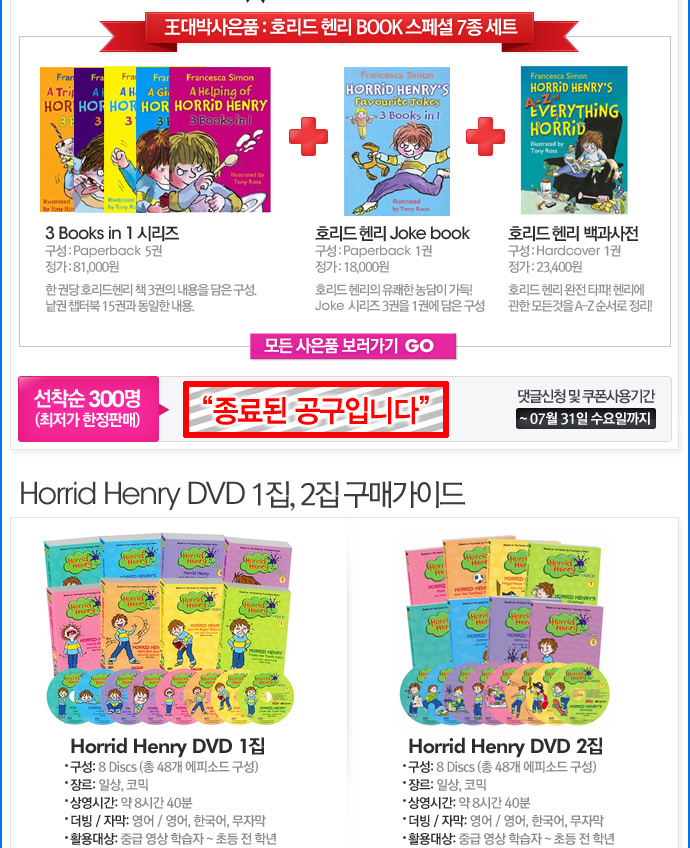 [´ñ±Û°ø±¸] Á¾·á [¼±Âø¼ø ´ñ±Û°ø±¸ 317Â÷] Horrid Henry DVD (±â°£: ~ 7/31±îÁö) |