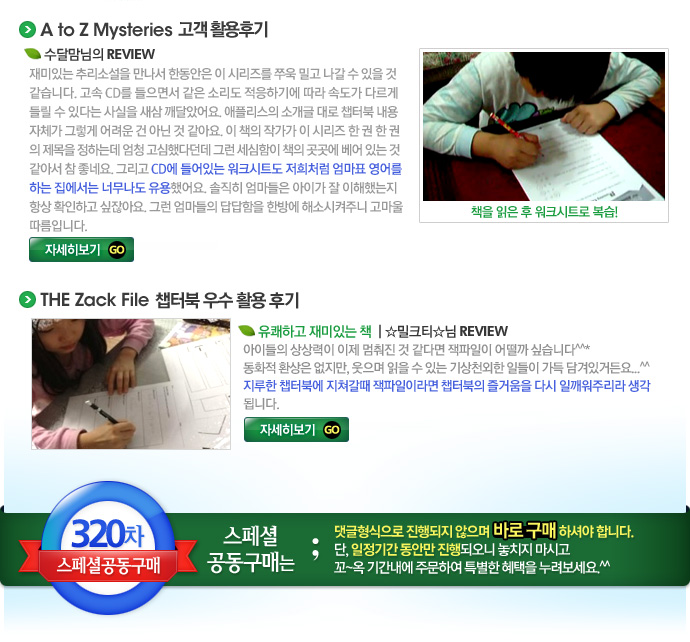 <table width="690" border="0" cellspacing="0" cellpadding="0"> <tr> <td><img src="/KIZ/etc/img2/spkongu130801_AtoZZack01.jpg" width="690" height="626"></td> </tr> <tr> <td><img src="/KIZ/etc/img2/spkongu130801_AtoZZack02.jpg" width="690" height="641" border="0" usemap="#prod1"></td> </tr> <tr> <td><img src="/KIZ/etc/img2/spkongu130801_AtoZZack03.jpg" width="690" height="563" border="0" usemap="#prod2"></td> </tr> <tr> <td><img src="/KIZ/etc/img2/spkongu130801_AtoZZack04.jpg" width="690" height="653"></td> </tr> <tr> <td height="57" background="/KIZ/etc/img2/spkongu130801_AtoZZack05.jpg" style="padding:0px 0px 0px 239px;text-align:left;vertical-align:top;"><script type="text/javascript">media02('http://www.lwbooks.co.kr/bookinfo/sound/zfiles01.wma',264,26);</script></td> </tr> <tr> <td><img src="/KIZ/etc/img2/spkongu130801_AtoZZack06.jpg" width="690" height="631"></td> </tr> <tr> <td height="57" background="/KIZ/etc/img2/spkongu130801_AtoZZack07.jpg" style="padding:0px 0px 0px 193px;text-align:left;vertical-align:top;"><script type="text/javascript">media02('mms://mms.eplis.co.kr/mmseplis/atoz_author.wma',264,26);</script></td> </tr> <tr> <td><img src="/KIZ/etc/img2/spkongu130801_AtoZZack08.jpg" width="690" height="642" border="0" usemap="#view"></td> </tr> </table> <map name="prod1"> <area shape="rect" coords="544,305,684,357" href="/shop/goods/goods_view.php?&goodsno=20598" target="_blank" onFocus="this.blur();"> </map> <map name="prod2"> <area shape="rect" coords="539,283,685,339" href="/shop/goods/goods_view.php?&goodsno=1685" target="_blank" onFocus="this.blur();"> <area shape="rect" coords="354,505,468,543" href="/shop/goods/goods_view.php?&goodsno=33081&category=009019001" target="_blank" onFocus="this.blur();"> </map> <map name="view"> <area shape="rect" coords="238,410,354,452" href="/shop/board/view.php?id=contents&search[subject]=on&search[word]=%C0%E8%C6%C4%C0%CF&no=1432" target="_blank" onFocus="this.blur();"> <area shape="rect" coords="26,231,142,269" href="/shop/board/view.php?id=contents&no=877" target="_blank" onFocus="this.blur();"> </map>