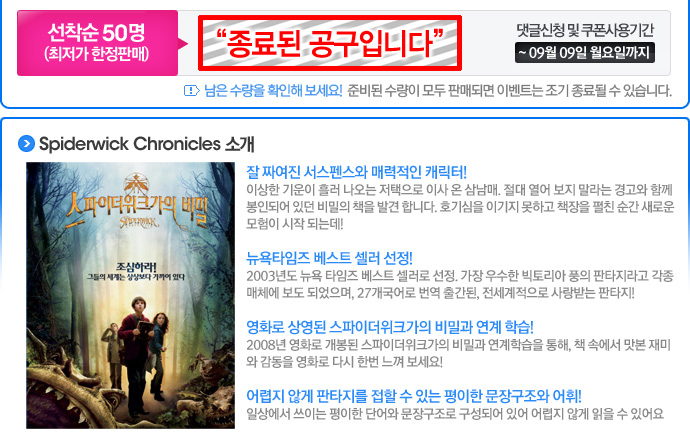 [¼±Âø¼ø°ø±¸] Á¾·á [¼±Âø¼ø Ư°¡°ø±¸ 332Â÷] The Spiderwick Chronicles (±â°£: ~9/9 ±îÁö) |