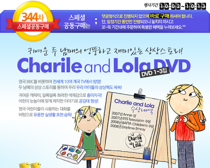[½ºÆä¼È°ø±¸] Á¾·á [½ºÆä¼È °ø±¸ 344Â÷] Charile and Lola DVD (±â°£: ~10/13) ÇѼöÀÎ