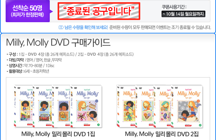 [¼±Âø¼ø°ø±¸] Á¾·á [¼±Âø¼ø Ư°¡°ø±¸ 345Â÷] Milly, Molly ¸®´õ½ººÏ & DVD (±â°£: ~10/14±îÁö) |