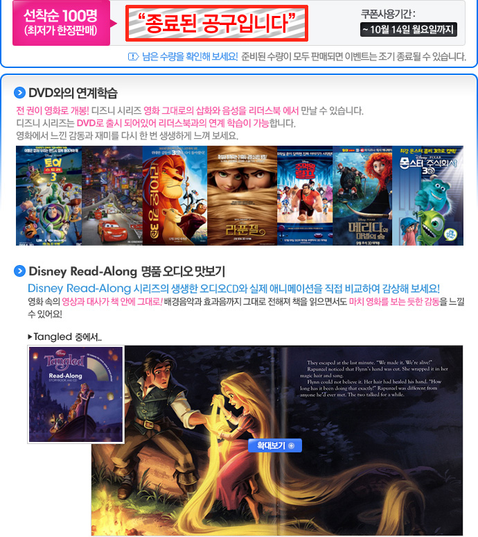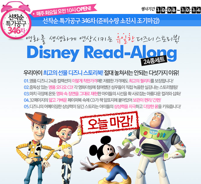 [¼±Âø¼ø°ø±¸] Á¾·á [¼±Âø¼ø Ư°¡°ø±¸ 346Â÷] Disney Read-Along (±â°£: ~10/14±îÁö) À¯Áö¼ö