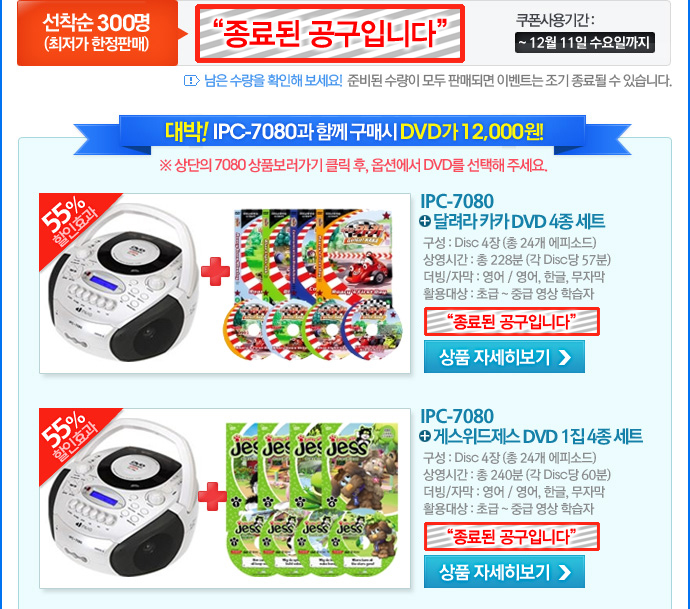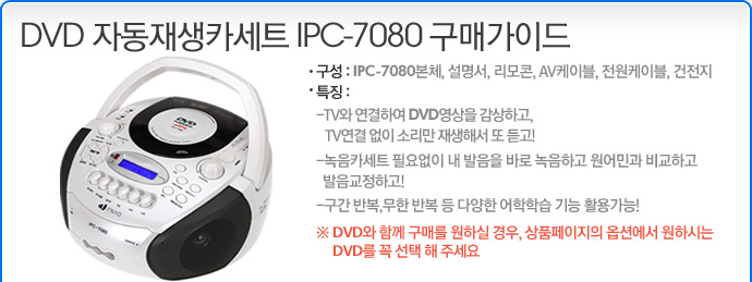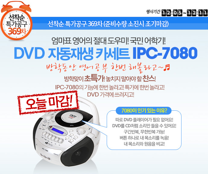 [¼±Âø¼ø°ø±¸] Á¾·á [¼±Âø¼ø Ư°¡°ø±¸ 369Â÷] DVD ÀÚµ¿Àç»ý Ä«¼¼Æ® IPC-7080 (±â°£: ~12/11) |