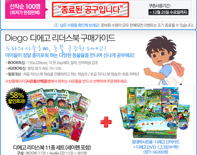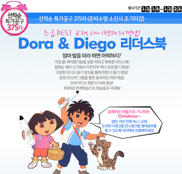 [¼±Âø¼ø°ø±¸] Á¾·á[¼±Âø¼ø Ư°¡°ø±¸ 375Â÷] Dora & Diego ¸®´õ½ººÏ (±â°£: ~12/25±îÁö) |